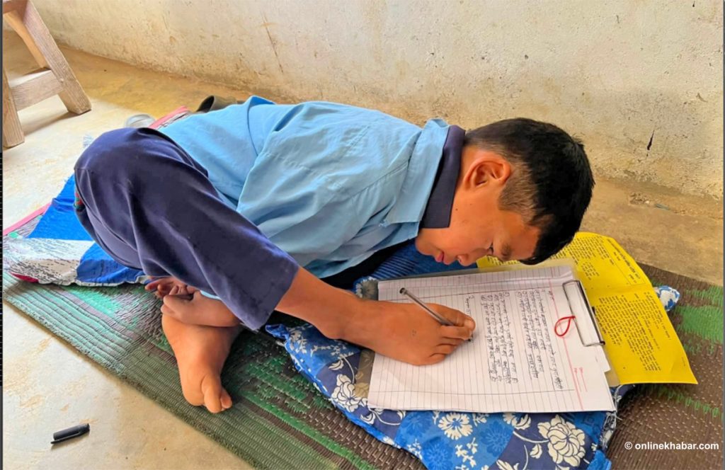 उनै शिक्षकले २०८२ चैत १० गते आफ्नो सामाजिक सञ्जाल फेसबुकबाट सन्देशले खुट्टाले लेखेर वार्षिक परीक्षा दिएको भिडियो सार्वजनिक गरे ।