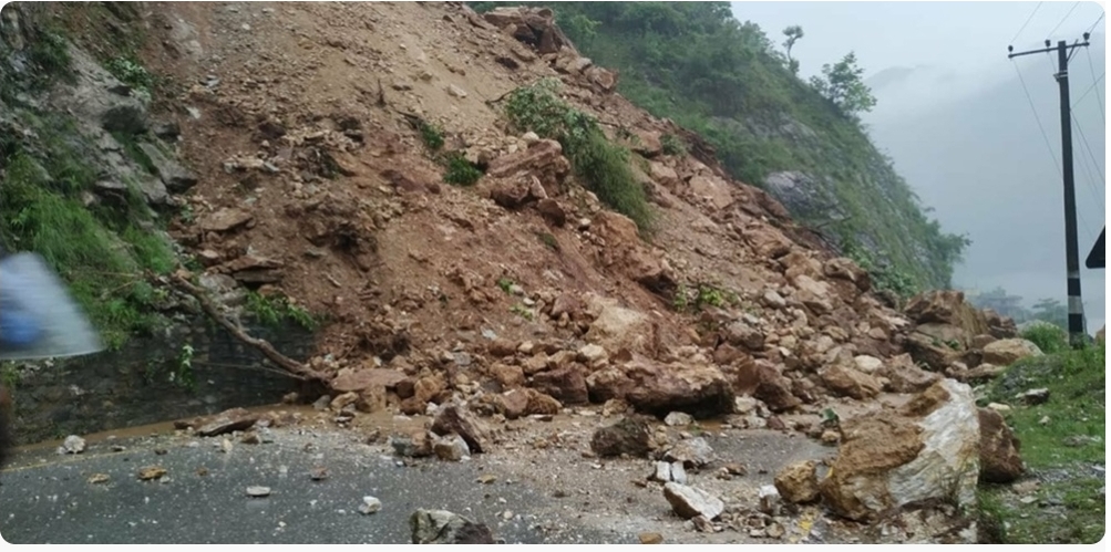 वर्षाका कारण मध्यपहाडी लोकमार्ग अवरुद्ध