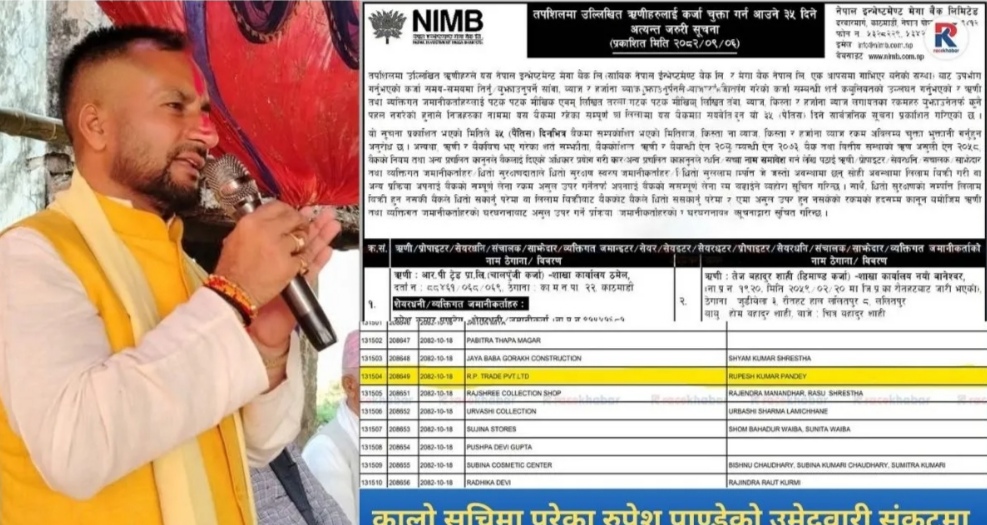 कर्जा सूचना केन्द्रको कालोसूचीमा रहेका पाण्डे विरुद्ध नेपाल इन्भेष्टमेन्ट मेगा बैंकले निर्वाचन आयोगमा उजुरी दिएपछि उनको चुनावी भविष्य संकटमा परेको हो।